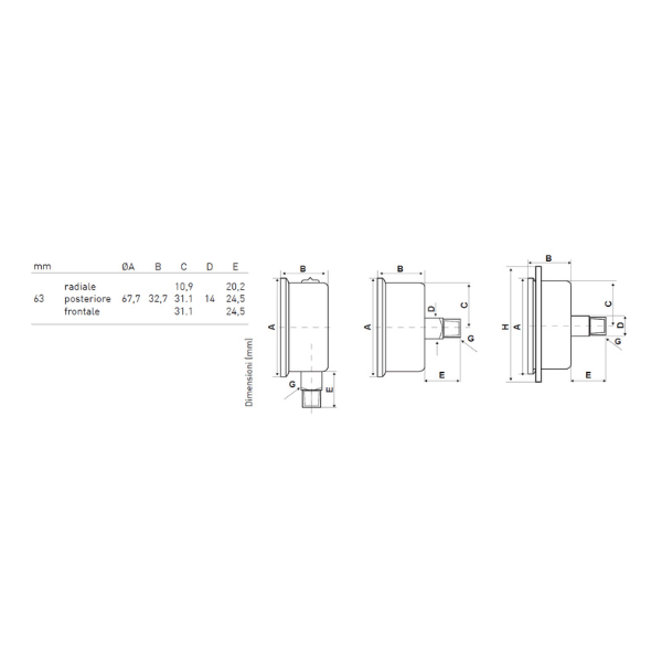 General Features: Sensing element – Phosphor bronze Bourdon tube;